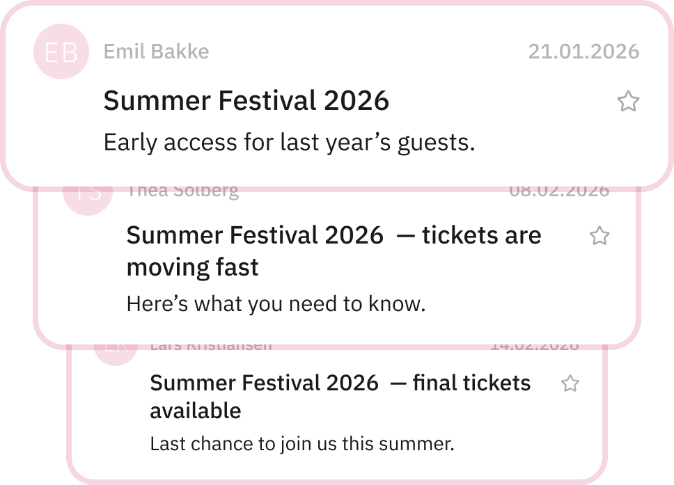 Lily prepares your communication from existing ticketing data - newsletters, event emails, and audience segments — automatically.